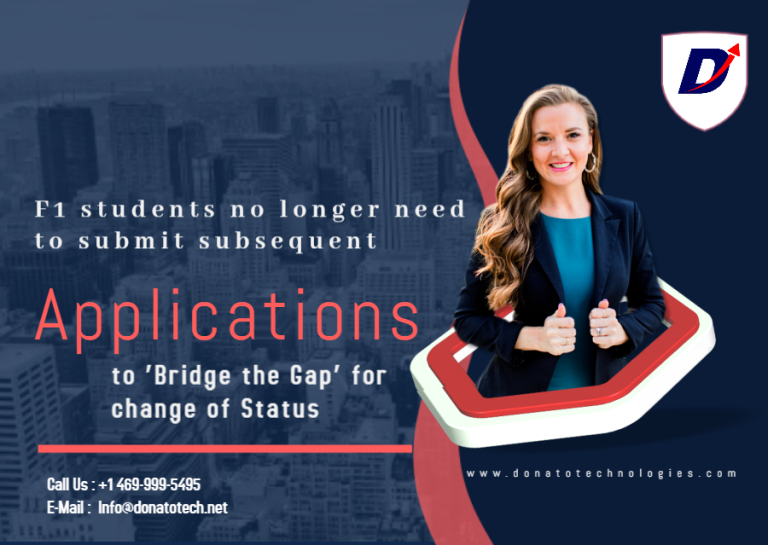 F1 students no longer need to submit subsequent Applications to ‘Bridge the Gap’ for change of Status